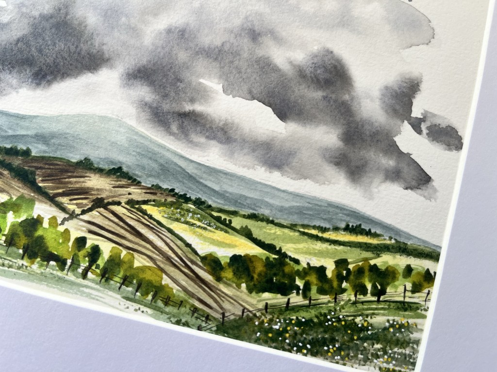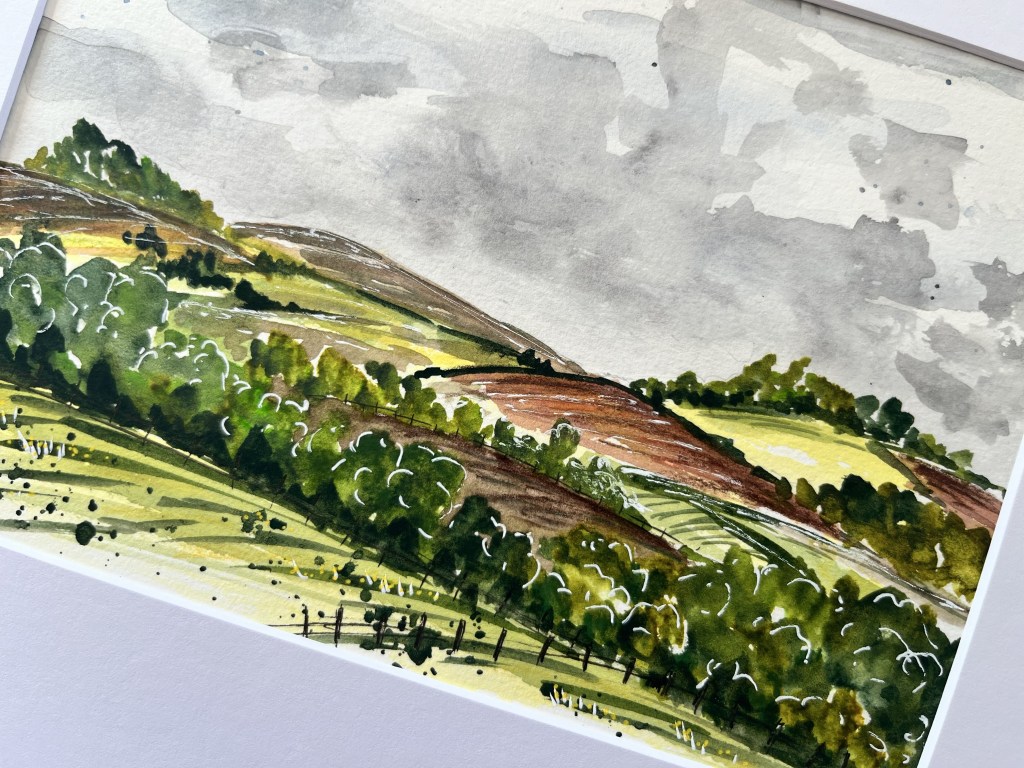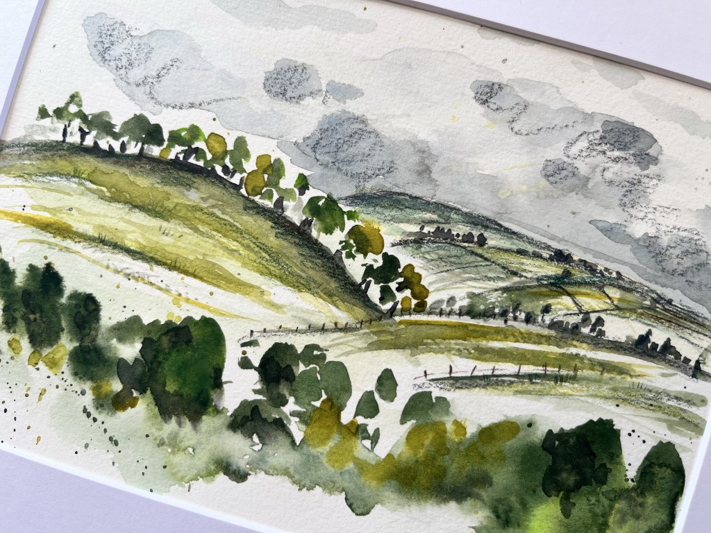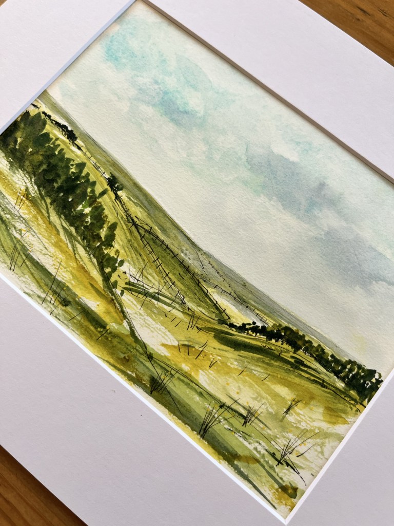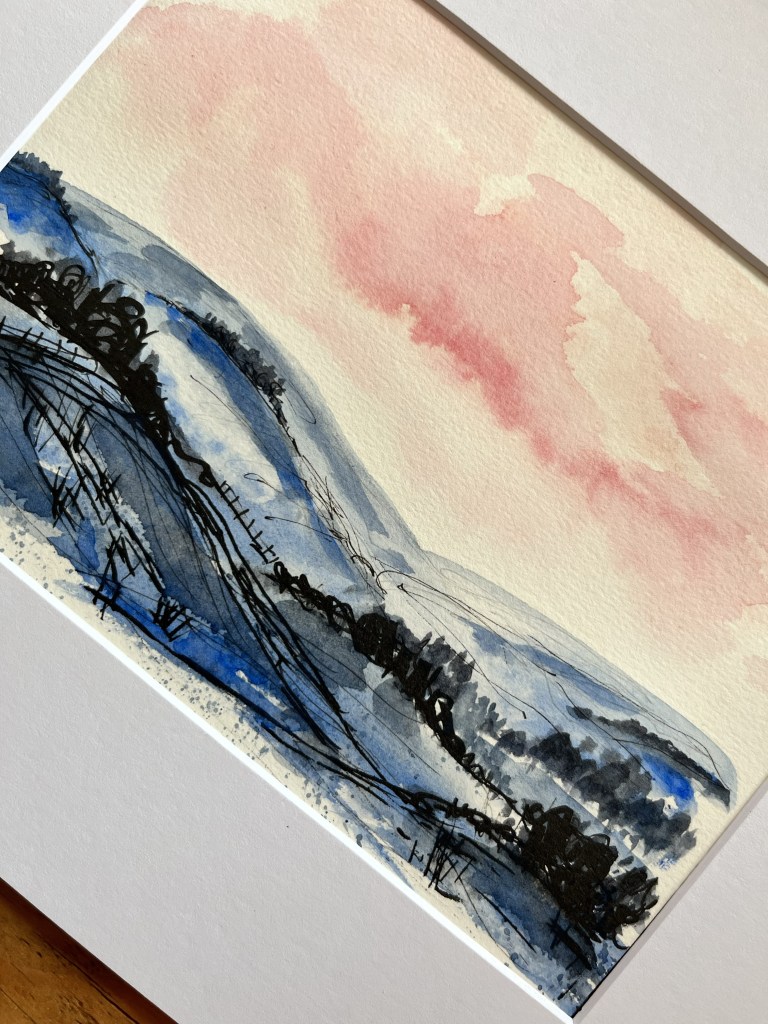 Hello and welcome to my first blog post. Today, I thought I would share with you some of the landscapes that I’ve been enjoying painting recently. I bought a lovely 5 x 7 300gsm %100 cotton paper watercolour pad from Temu of all places and it’s been a really lovely medium to use to experiment with landscapes. I live in a beautiful part of Devon surrounded by countryside views and have always felt very intimidated painting them. Howwever, I feel something has clicked within me recently and I’ve just started to go for it. I have done a selection of landscapes and whilst they are inspired by my surroundings I have definitely used some artistic license with process. Here are a few of them.